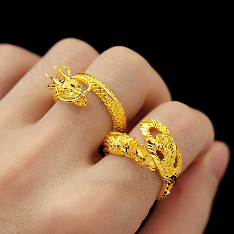 Wedding Couple Models Dragon And Phoenix Ring Vietnam Sand Gold